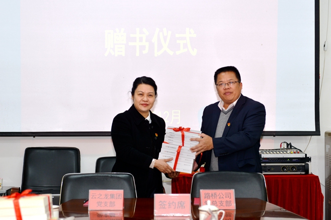隨后,雙方互贈書籍。南寧路橋公司黨總支部給云之龍集團(tuán)黨支部贈送了《中國制度面對面》《習(xí)近平談治國理政》等學(xué)習(xí)書籍;云之龍集團(tuán)黨支部將行業(yè)書籍《亞利聊政采》贈送給南寧路橋公司黨總支部。