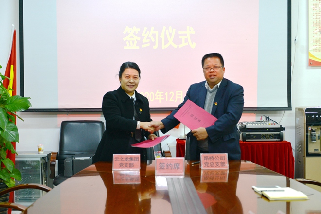 為提高黨建工作水平,向優(yōu)秀黨組織靠攏,2020年12月31日,云之龍集團(tuán)黨支部與南寧路橋公司黨總支部開展黨組織共建座談會并簽訂了共建合作協(xié)議。通過此次合作,探索和構(gòu)建起雙方黨組織互聯(lián)互動、互促共進(jìn)、共促發(fā)展的黨建一體化工作格局,以高質(zhì)量黨建促進(jìn)各項工作穩(wěn)步發(fā)展。