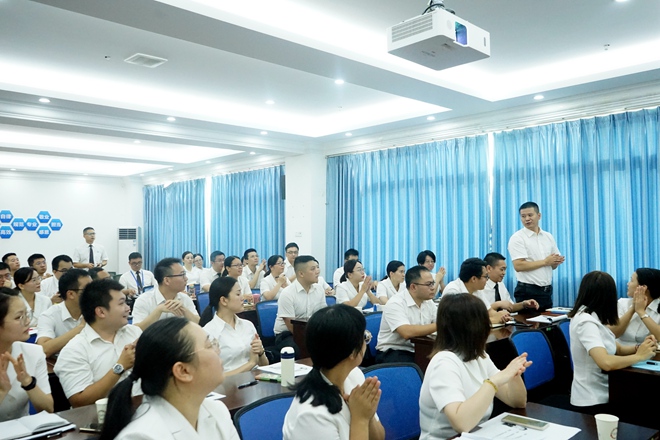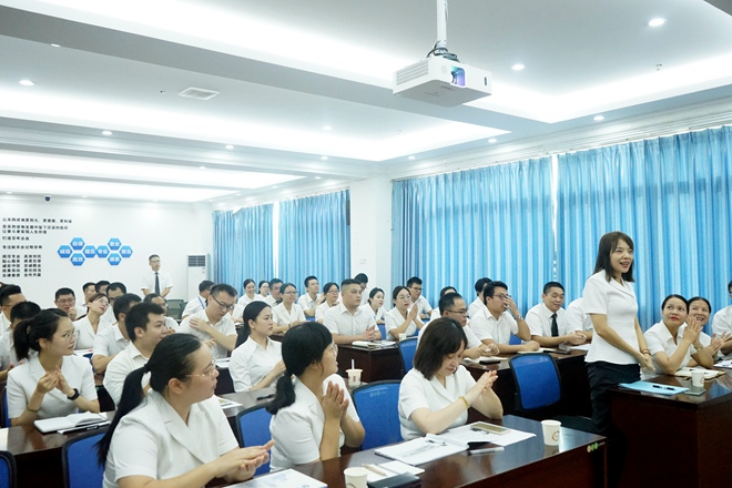 在莫國華、聶嘉薇副總裁的課程結束之后,全體講師開始分組演練。講師們圍繞課件內容,結合工作案例一一試講,將政策法規講得有聲有色,獲得導師們的一致認可。