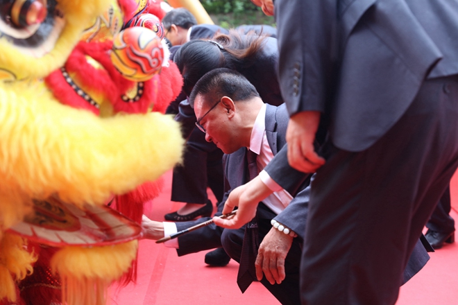 吉時12:08,鼓聲喧天,禮炮齊鳴,瑞獅歡騰。青秀區工商聯機關黨委書記、工商聯常務副主席、統戰部副部長楊伊莉與云之龍黨總支部書記王鐿霖為“中共云之龍咨詢集團有限公司總支部委員會”揭牌。同時,原致公黨中央副主席、廣西政協副主席、致公黨廣西區委主委黃格勝與梁榮森董事長在集團正門揭牌。