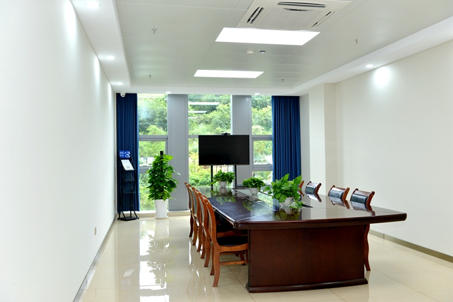 揭牌儀式后,集團領導帶領各位嘉賓參觀集團大廈。新的辦公室寬敞明亮,辦公設備高端大氣,配有企業文化室、多功能培訓室、多功能會議室。新的開標大廳、電子評標室、雙向系統評標室等配備了先進的開標、評標系統,更加高端舒適。