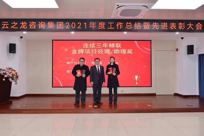 2022年1月22日,云之龍咨詢集團舉辦2021年年終總結暨表彰大會。會議以集團總部一號多功能廳作為主會場,各地市分公司作為分會場。400多名云之龍人通過線上線下雙重方式參與會議。