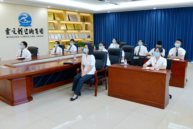 在云之龍集團總部五樓多功能廳,黨員們圍坐一起,共同見證這一歷史時刻,感受著團結(jié)、和諧、奮進的時代脈動,處處洋溢著歡快、幸福、自豪的氣氛。在直播期間,與會人員聚精會神觀看,不時為報告內(nèi)容所打動、所振奮。