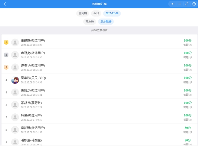 為紀念現行憲法公布施行40周年,響應國家“尊崇憲法、學習憲法、維護憲法、運用憲法”的號召,云之龍黨總支在憲法學習周推出“每日憲法知識闖關答題”小活動。黨員每日答題1次,答題內容為憲法基礎知識。活動期間黨員們積極參與線上答題,并曬出分數,通過以練促學、以學促用,豐富了黨員們關于憲法的基本常識,提升廣大黨員隊伍遵法、學法、守法、用法的意識和能力。