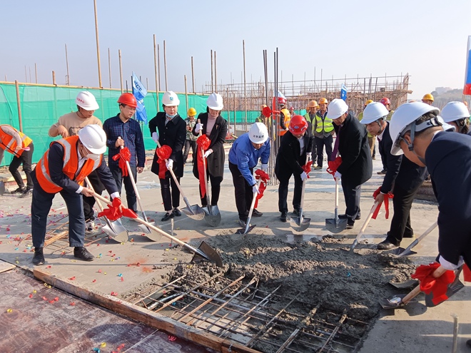 當天上午,醫院領導班子全體成員、云之龍全過程工程咨詢團隊、建設工程施工單位、設計單位、監理單位共同進行最后一方混凝土澆筑,完成門診樓主體結構封頂,蒼海醫院建設工程邁入新階段。