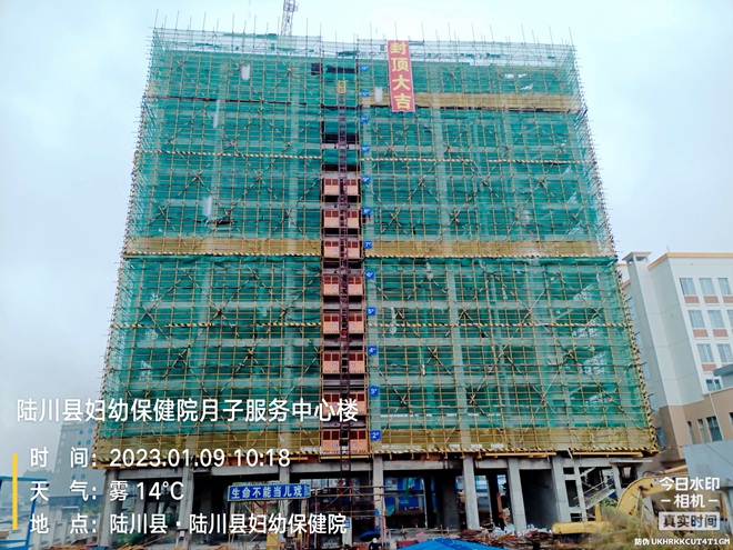 2023年1月9日,陸川縣婦幼保健院月子服務中心樓迎來封頂。