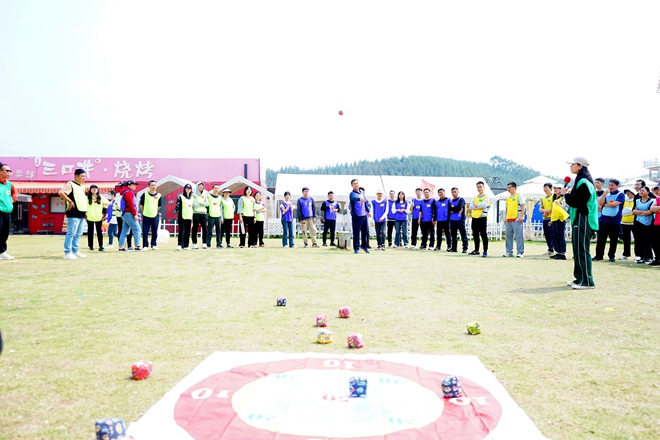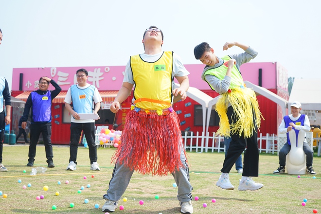 活動中,還準備了“躲貓貓、抖臀達人、蜻蜓點水、沙包擲準、坐地起身”等趣味游戲,100多人分為6個小組,團結協作,互相比拼,贏取積分,拿下勝利果實。