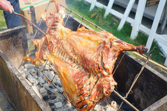 工程師們玩得不亦樂乎,吃得也十分盡興,烤全羊、烤豬、烤魚、烤生蠔、烤串,還有水果和零食,讓大家在品嘗美食中,放松身心。