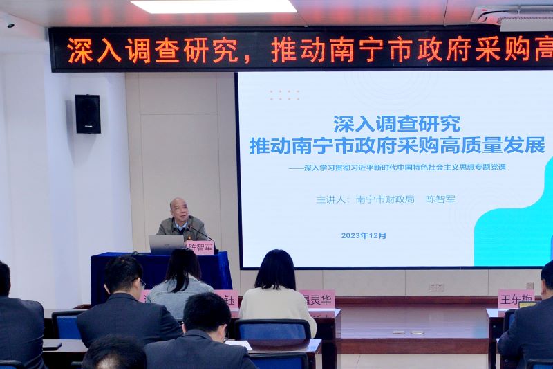 黨課圍繞學深悟透習近平新時代中國特色社會主義思想,緊扣職能職責,結合工作實際,用黨的創新理論指導實踐、推動工作。他要求,黨員同志要把理論學習作為重中之重,做到既通覽全局、知曉整體,又要把握重點,系統化、全方位、多角度學習領悟,不僅有“質”更應有“效”。陳智軍副處長希望全體黨員提高認識,更好掌握習近平新時代中國特色社會主義思想,加快推動南寧市政府采購高質量發展,為新時代壯美廣西建設貢獻一份力量。