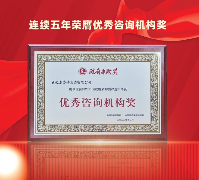 會議對在2023年度政府采購實踐中涌現出的先進集體和優秀個人進行頒獎,云之龍咨詢集團名列其中,再次獲得由中國政府采購報、中國政府采購新聞網頒發的優秀咨詢機構獎,這是云之龍連續第五年榮獲該獎項。