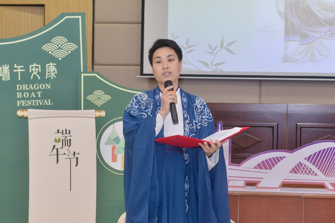 在誦讀經典環節,誦讀者們聲情并茂、滿懷熱情地朗誦了《小重山·端午》《傳承屈子精神》《端午詠屈原》《永恒的端午》等經典詩篇。