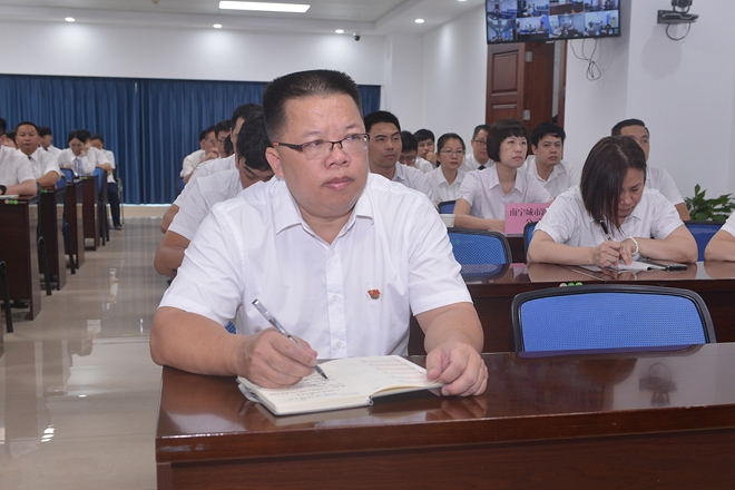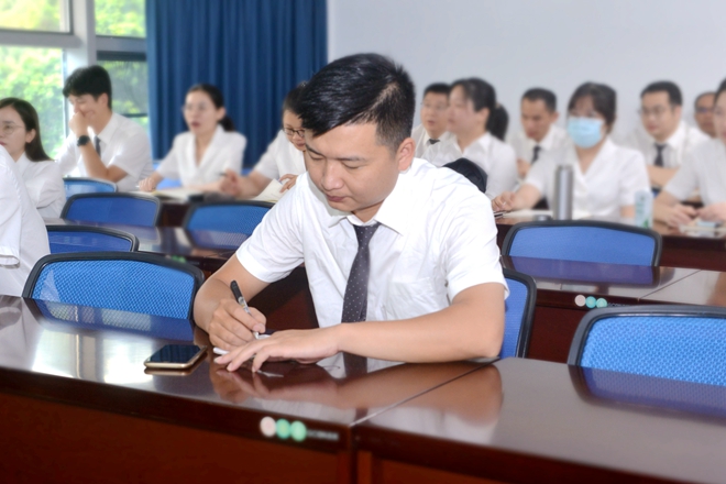 南寧路橋公司黨總支部書(shū)記、董事長(zhǎng)韋敏生,云之龍黨總支部書(shū)記、總裁王東梅,以及雙方黨總支部黨員、云之龍全體員工共300多人同上專題黨課,共筑清風(fēng)正氣。