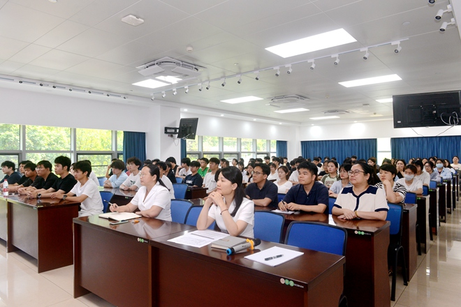 全過程工程咨詢部一級造價師胡冬梅老師,通過具體項目,為學(xué)生展示工程量清單及招標控制價的編制流程及編制注意事項。她以自身經(jīng)歷勉勵學(xué)生“行業(yè)在變革,但深耕專業(yè)的‘匠人精神’永遠不會過時。”