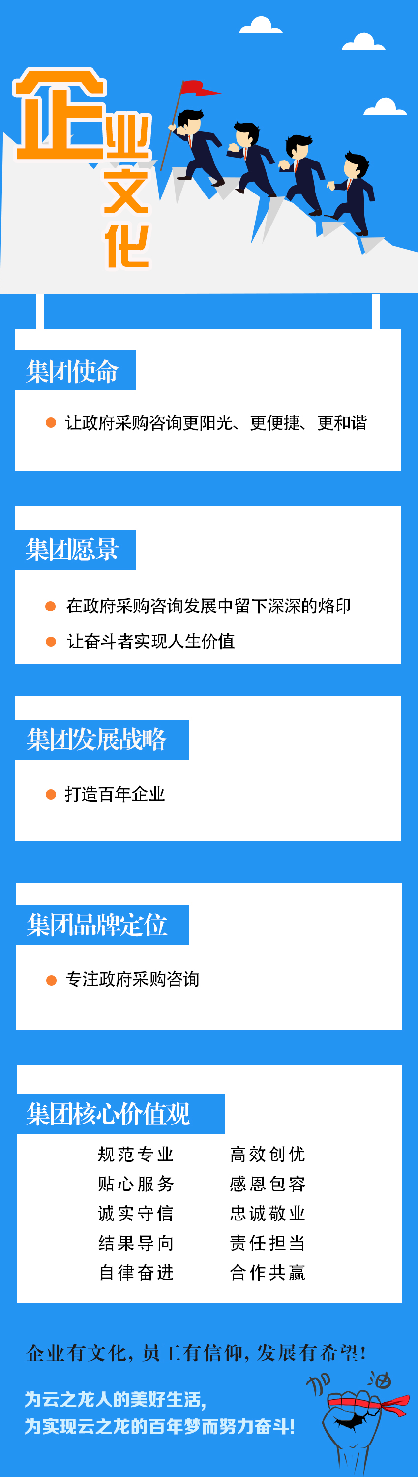 企業文化宣貫作為一項長期的戰略任務,云之龍集團將不斷創新宣貫形式,積極營造濃厚的學習企業文化氛圍,與所有云之龍人一道深層次地了解企業文化發展歷程,進一步提升大家對企業文化核心理念的認知認同。同時,云之龍人要同心追夢、奮楫創業,將企業文化內化于心,外化于行,把企業文化理念轉化為核心競爭力,積極開拓政府采購咨詢領域。