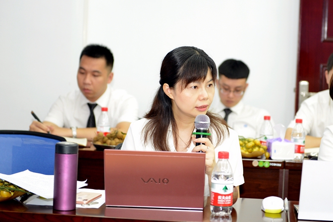 集團副總裁聶嘉薇分析2019年上半年集團業務情況,與大家分享新業務推廣經驗。她表示,在自媒體時代,人人都是集團的代言人,要通過微信等新媒體平臺加強對集團的宣傳推廣。同時要樹立起品牌形象,提升品牌競爭力,以品牌效應帶動集團的業務發展。
