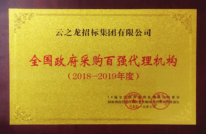 云之龍集團(tuán)榮獲行業(yè)內(nèi)大獎(jiǎng)——全國(guó)政府采購(gòu)百?gòu)?qiáng)代理機(jī)構(gòu)
