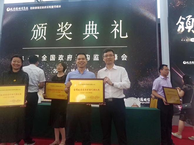 2019年7月27日,從第14屆全國(guó)政府采購(gòu)監(jiān)管峰會(huì)上傳來喜訊,云之龍集團(tuán)榮獲“全國(guó)政府采購(gòu)百?gòu)?qiáng)代理機(jī)構(gòu)”獎(jiǎng)。