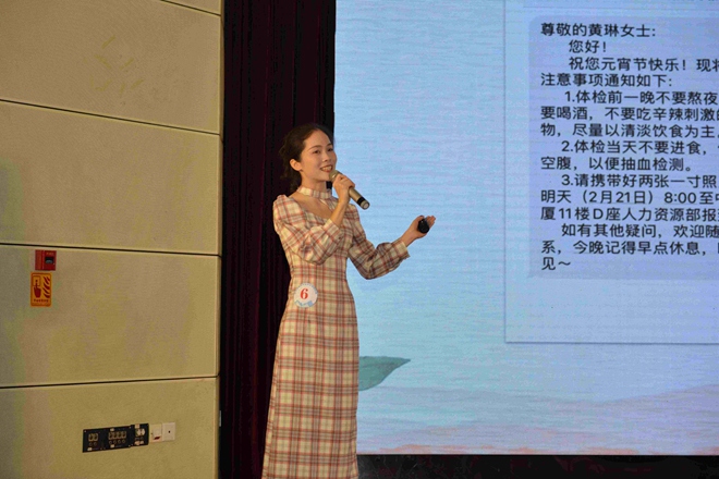 南寧分公司項目經理陳檸作為評委代表發言,她說,企業文化演講比賽,是為加強企業文化建設,發掘優秀的云之龍精神而搭建的施展才華的舞臺。作為比賽的評委,她將嚴格遵守比賽規則和評委紀律,尊重參賽選手,文明評審。